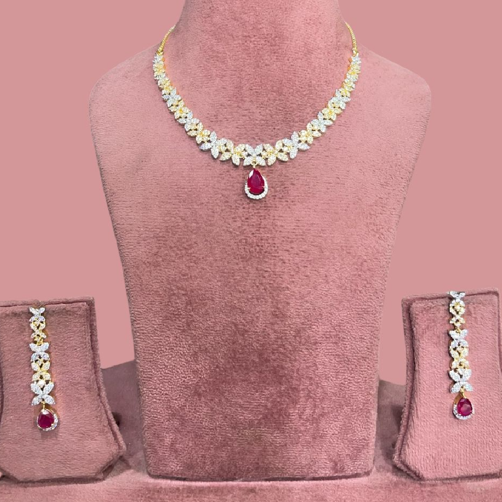 Add a touch of timeless sophistication to your jewelry collection with our American Diamond Floral Necklace Set. Inspired by the natural beauty of blooming spring vines, this set seamlessly blends traditional charm with contemporary luxury. There are three colour options – white teardrop pendant , ruby red and emerald green