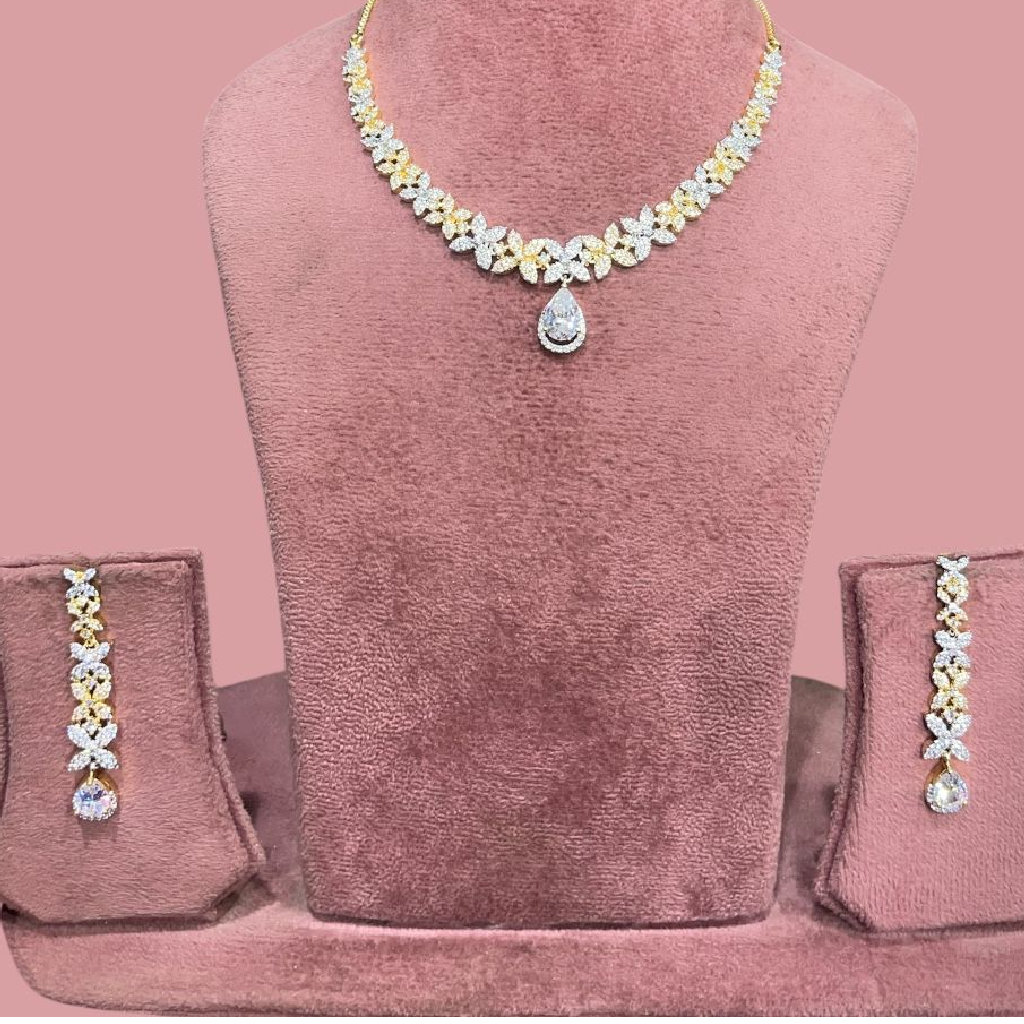 Exquisite American Diamond Floral Necklace Set