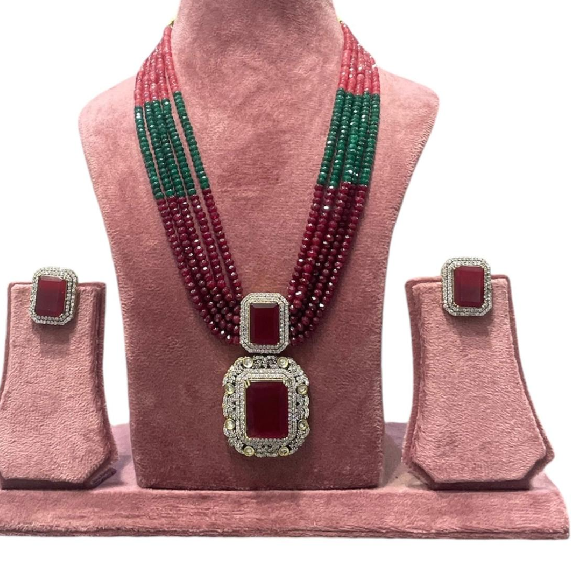 Elegant emerald green colour layered necklace, formal long necklace set with fine stone settings.Colour options available.
