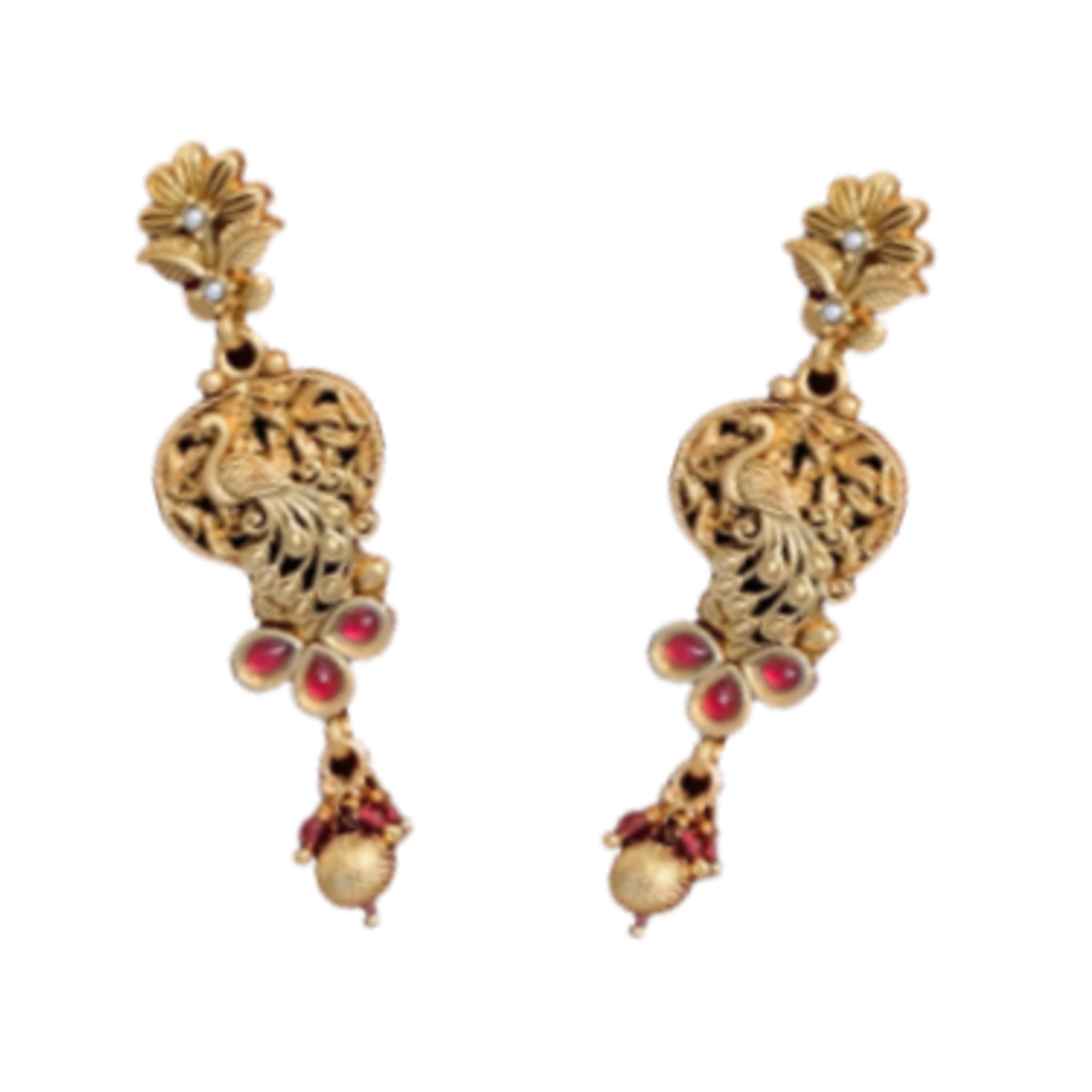 Golden Necklace Set, elegent and ethnic jewellery featuring temple long neckpiece with intricate carvings and a beautiful pendant with gold touch