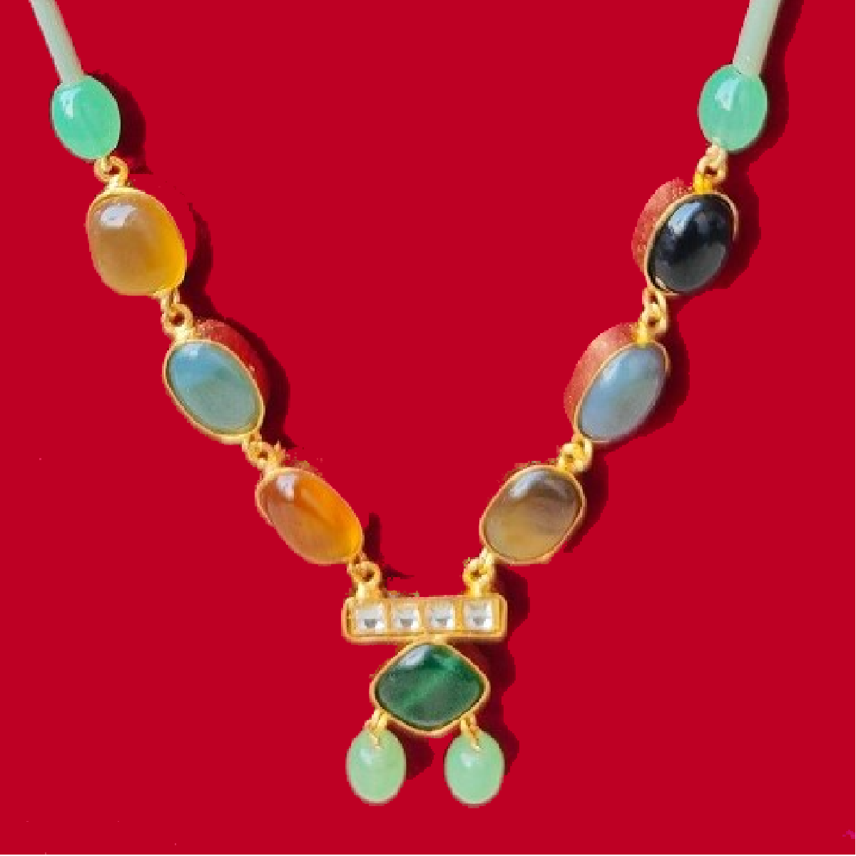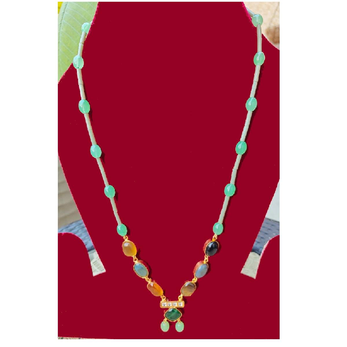 Stylish string multicolor stone necklace with pendant in vibrant coordinated colour
