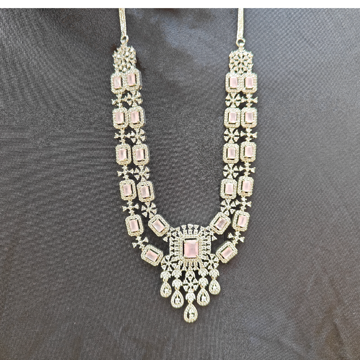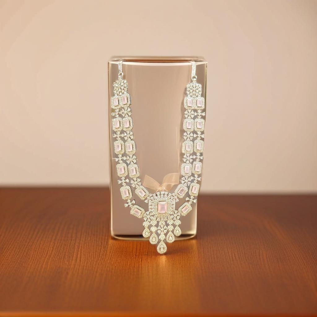 Pink Stone Dual layer stone studded necklace set.